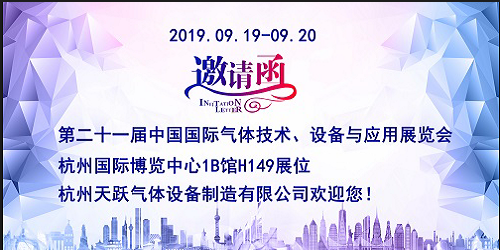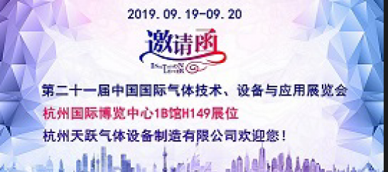 诚挚邀请各位莅临第二十一届IG China 2019展览会天跃气体展台参观指导,展位号1B馆H149.